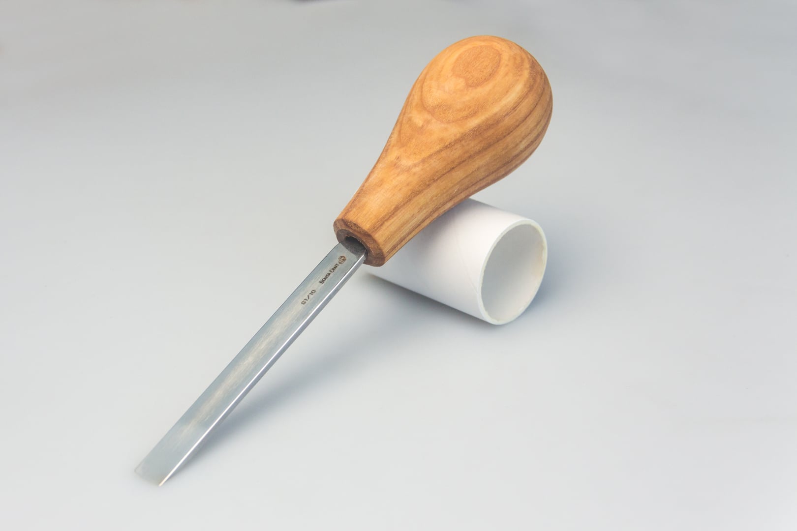 This chisel with a single flat bevel is meant as a palm instrument that can be used for general carving, outlines and chipping away the corners or depth of the wooden block to make it thinner. It can be easily worked as a replacement for a carving knife and become a handy tool for general whittling moves.