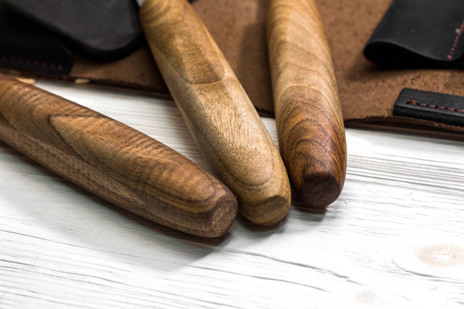 This kit will be suitable for both general carving if you prefer a meticulous approach and small detail carving – only depends on how you want to use it. High-carbon razors, chocolate walnut handles covered with oil, all in the leather roll with attributes for honing.